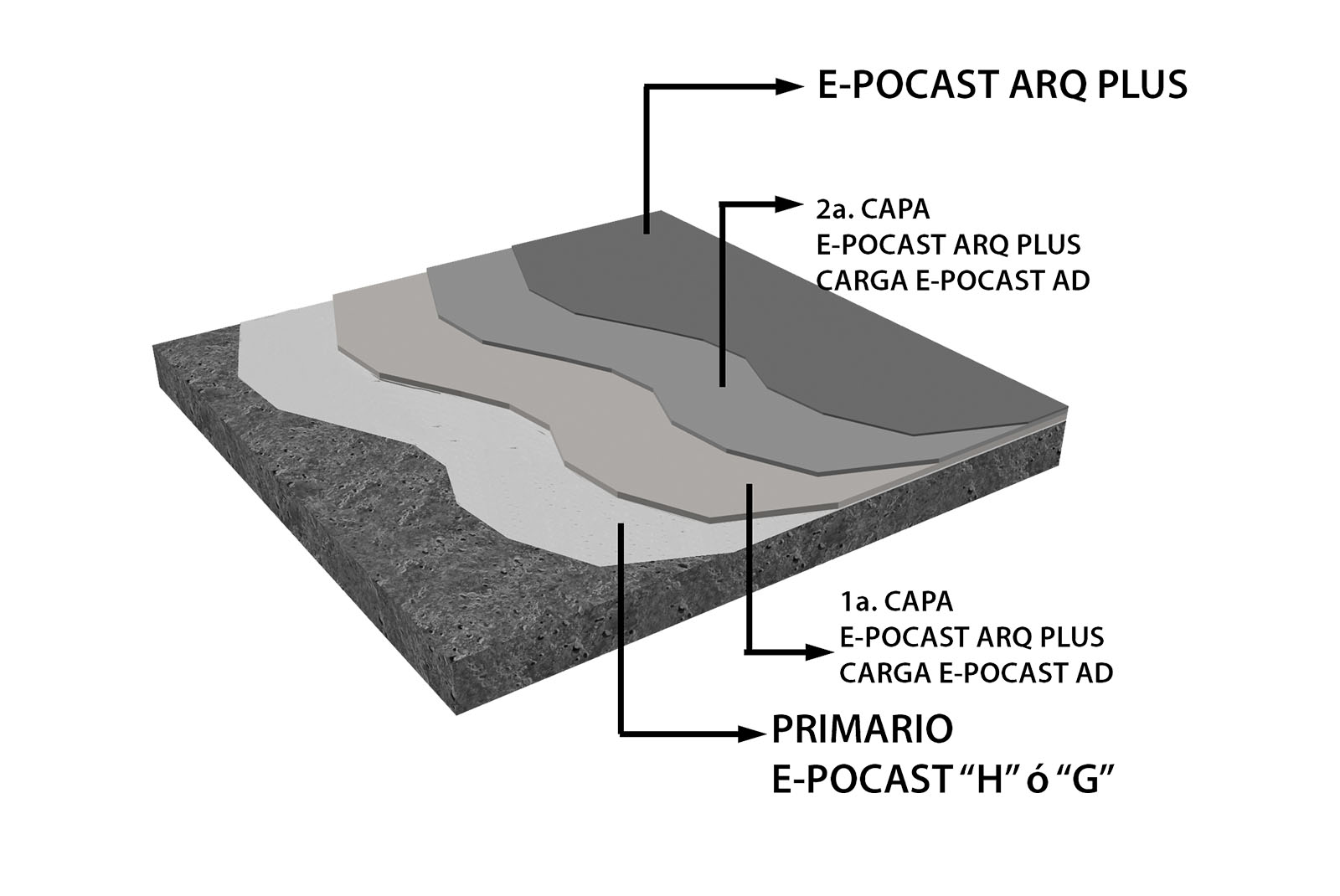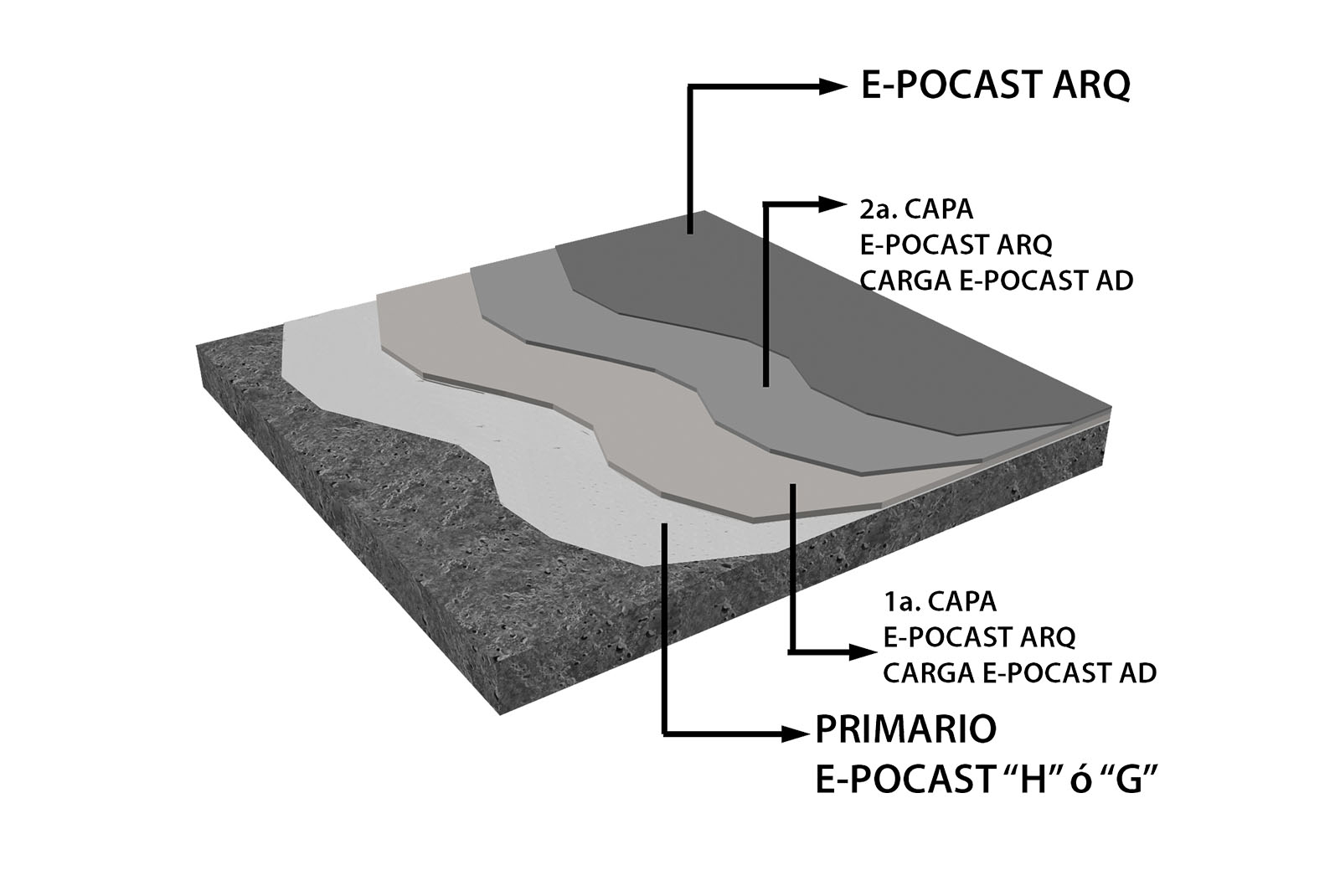 Sistema epóxico a base de resinas epóxicas 100% sólidos con agregados de cuarzo pigmentado, en donde además de protección se desea un acabado estético, al combinar los granos de diferentes colores se produce que los tonos adquiridos sean ilimitados. Este sistema es ampliamente utilizado en cafeterías, restaurantes, centros comerciales y puede ser de uso residencial y comercial.